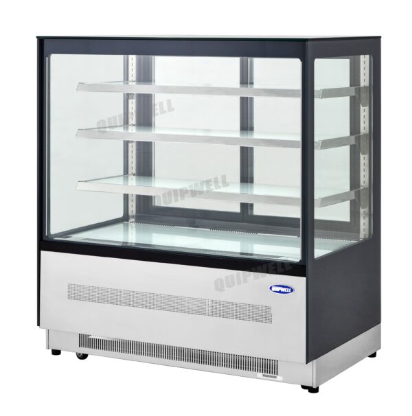 - Design: Sleek 4-tier square cake display fridge with wall-to-wall panoramic glass for showcasing chilled merchandise. Under-mounted heavy-duty Secop compressor elevates cabinet sightlines for sales-driven presentation.