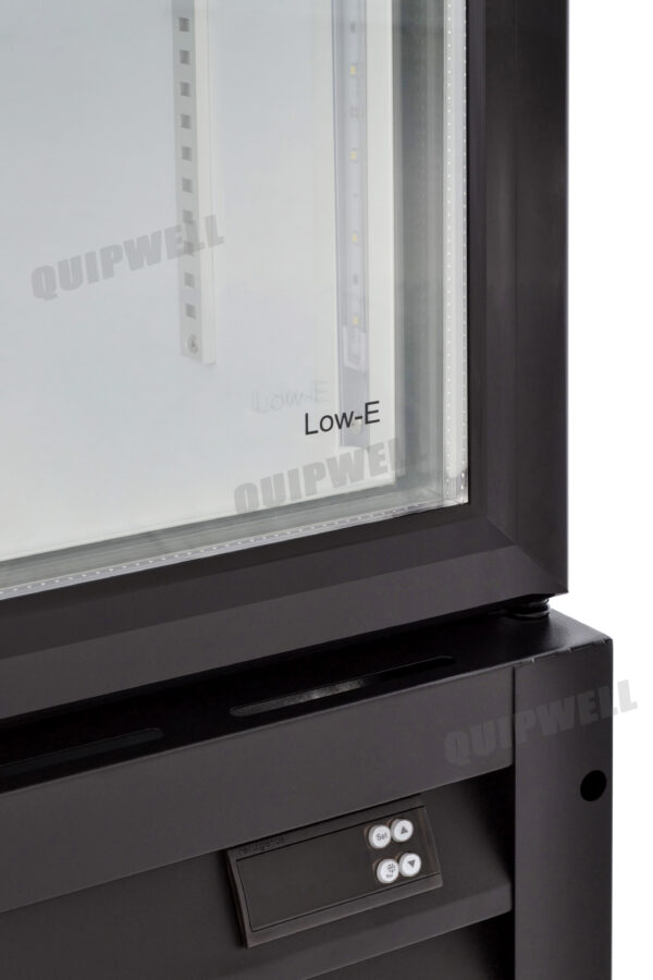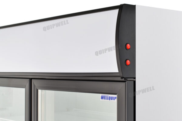 - Display: Energy-efficient interior LED vertical lighting to drive sales appeal. 2× self-closing hinged doors with magnetic door seals and double glazed Low-E glass display for insulation and reduced condensation. Customisable overhead signage display light box for branding opportunities.