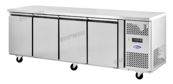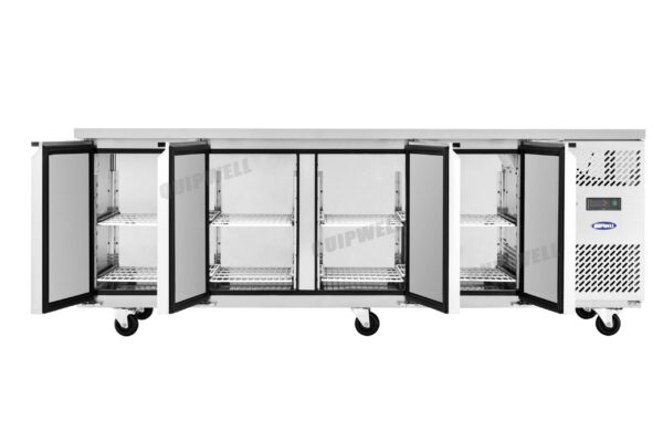 When space is limited but peak performance is essential, the Wellquip 4 Door Under Bench Fridge 560L (WFA56) delivers powerful and reliable refrigeration in a compact footprint. Designed for restaurants, cafés, fast casual venues, pubs, juice bars, and bakeries, it combines under-counter cold storage with an integrated stainless steel worktop to streamline food prep in busy kitchens.